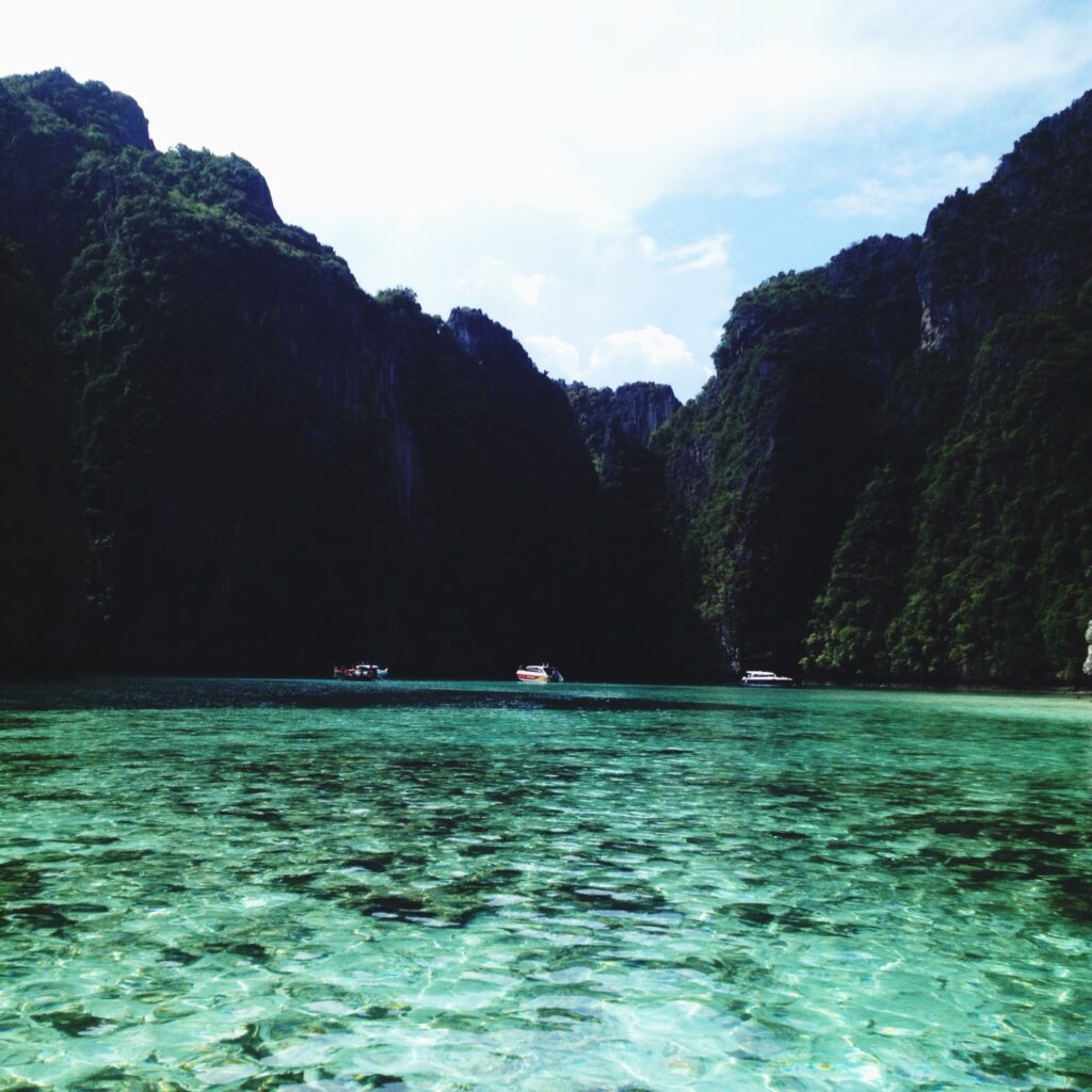 Rodeada de acantilados dramáticos, acceso limitado para conservación ambiental. Naturaleza tailandesa en su máxima expresión.