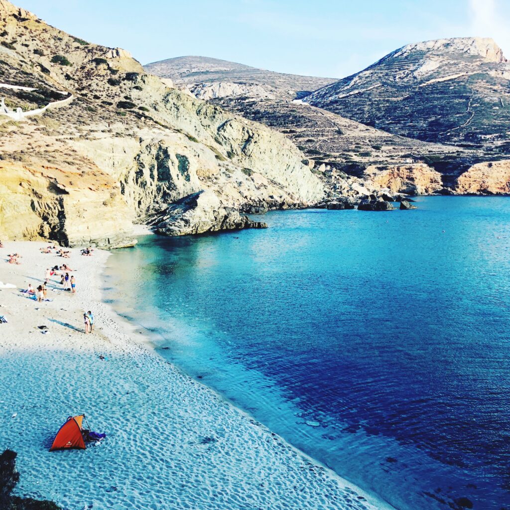 Rocas volcánicas blancas que crean un paisaje lunar único, aguas azul intenso. Geología espectacular.
